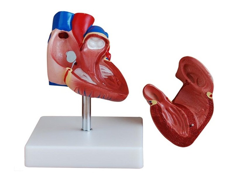 La pared frontal del corazón es extraíble para ver las cámaras y las estructuras internas.